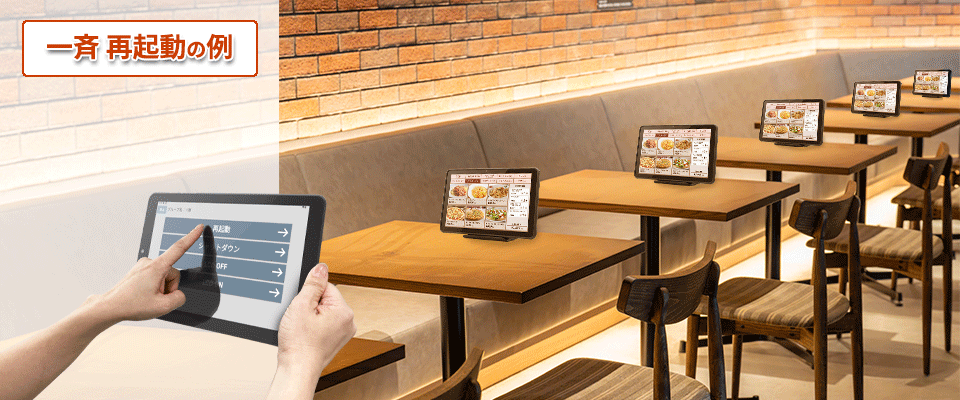 \サーバー不要で一斉操作・飲食店などの人手不足をサポート/ Tablet Control 当社オリジナルMDMアプリ |