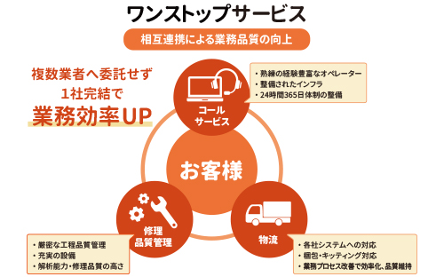 長年AV・PCメーカーのサービス拠点として修理サービスセンターおよびコールセンター事業をおこなってきた当社が