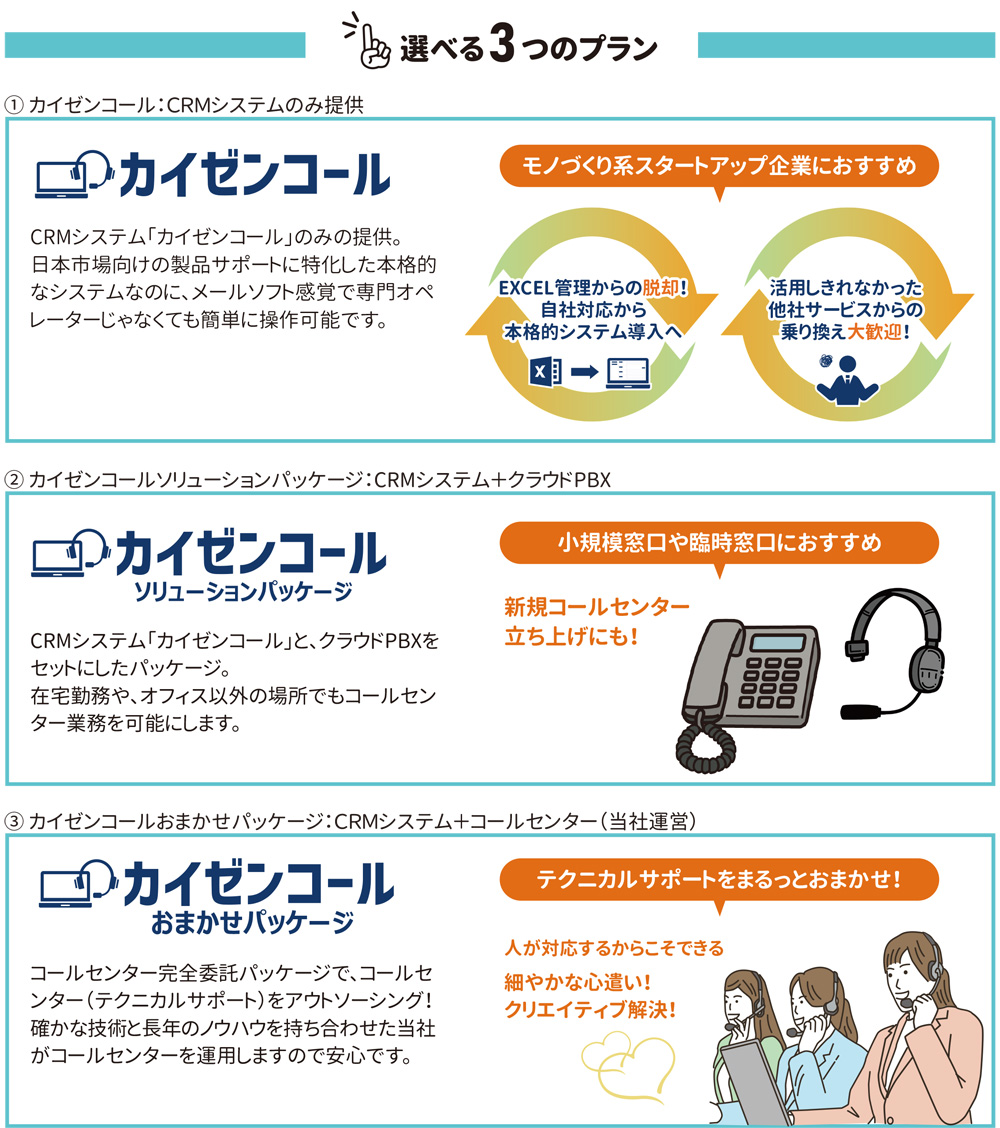 「カイゼンコール」は、品質や技術力と同様にアフターサポート体制の充実が重要となるAV/家電/IT関連などのモノづくり系企業向けに、