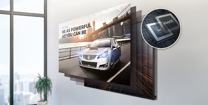 | 高いパフォーマンス、 優れたスケーラビリティ 搭載されたSoCとwebOS Smart Signage Platformが、複数のタス クを同時実行でき、さらにメディアプレイヤーなしでスムーズなコンテンツ再生を実現します。 webOSはウェブベースのプラットフォームとしてHTML5 に対応し、LGが提供するソフトウェア開発キット(SDK)で、Slsによるウェブアプリのウェブアプリの構築と最適化がさらに簡単になります。