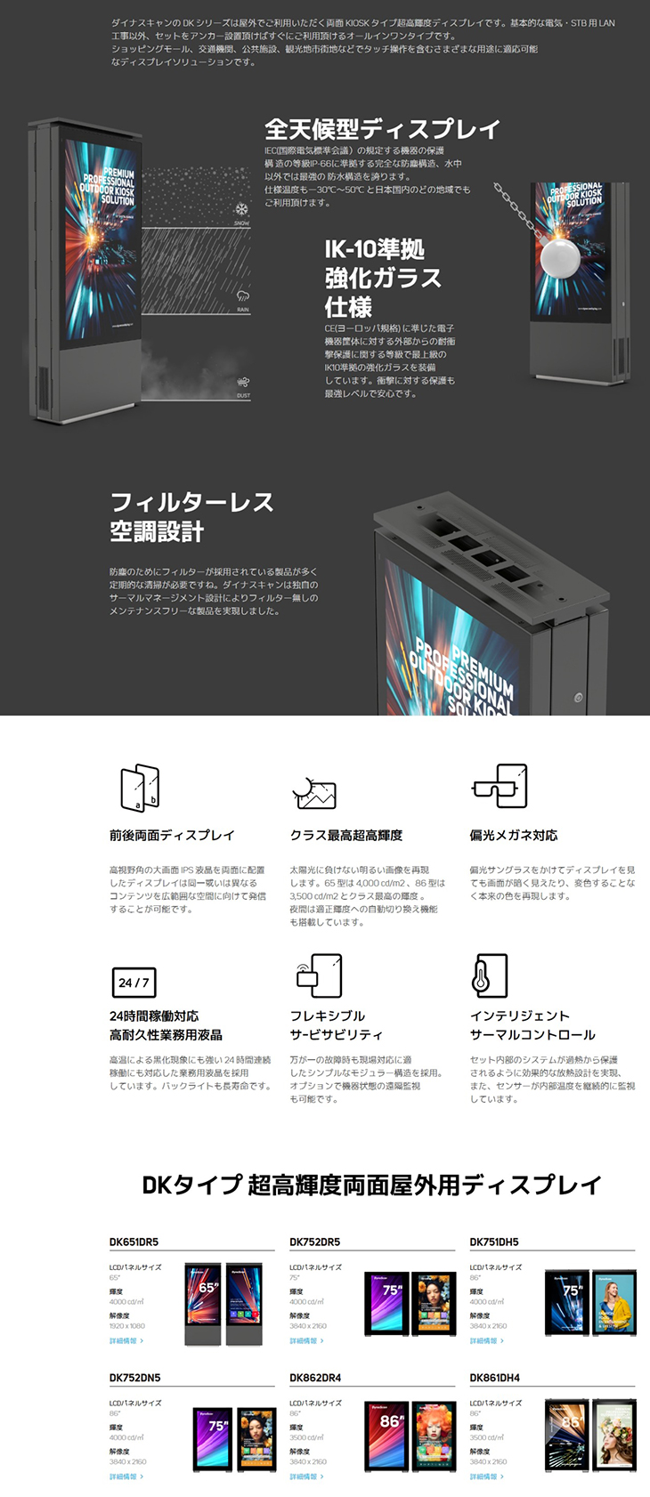 DynaScan デジタルサイネージ 屋外両面超高輝度LCDディスプレイ 4000/3500 65/75/86インチ【DKタイプ】