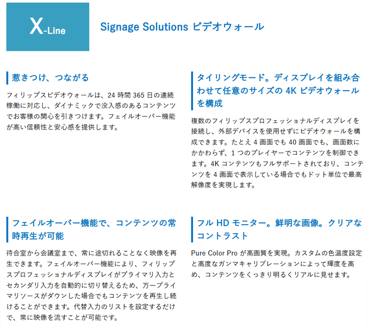 Philips デジタルサイネージ X-Line ビデオウォール500カンデラ 55インチ ベゼル幅1.8mm【3305X】