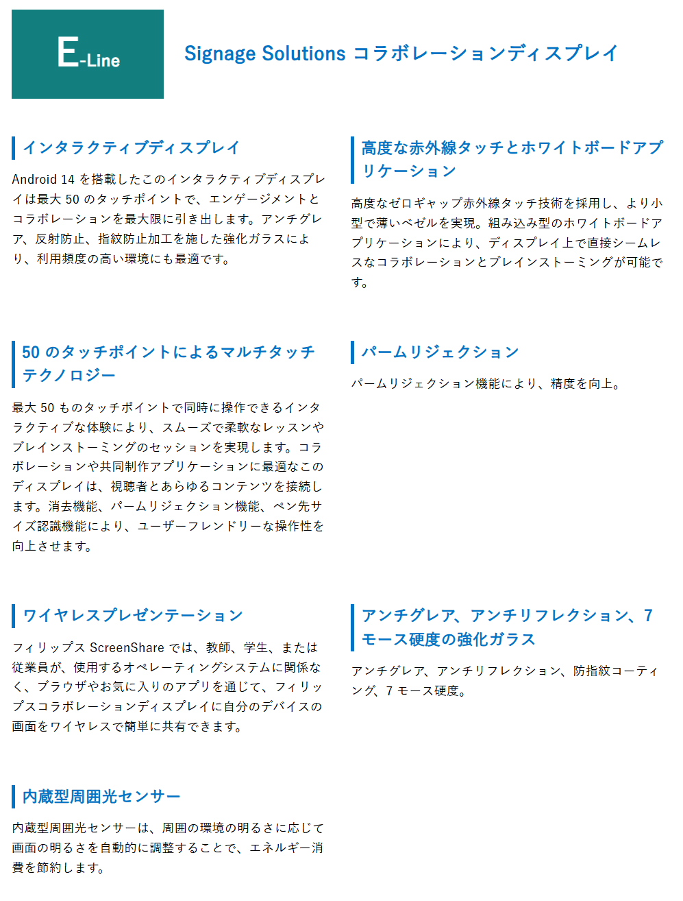 Philips デジタルサイネージ E-Line タッチモデル 電子黒板 65インチ/75インチ Android OS搭載【4252E】